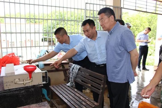 姜宏濤(右一)在收膠站實地調研。